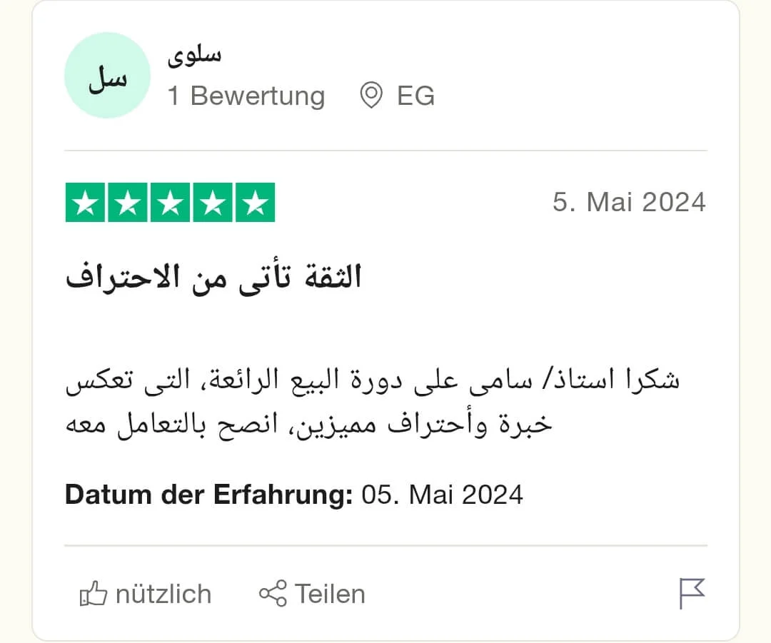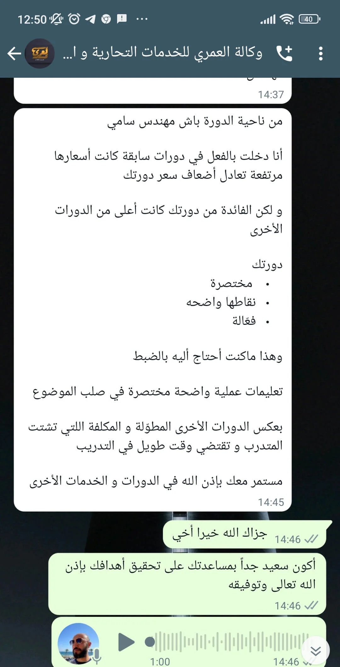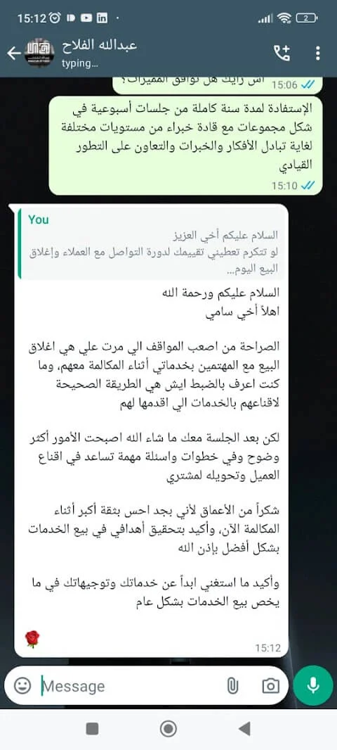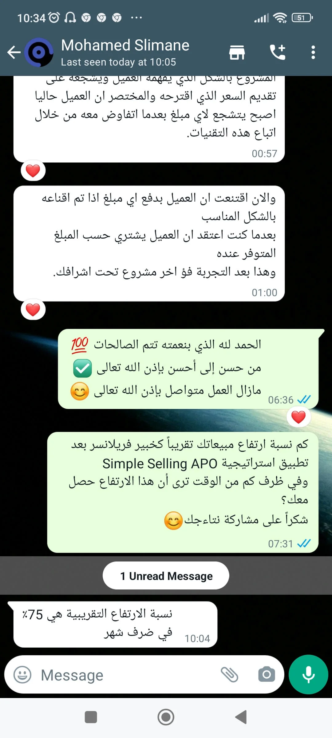 ⭐️ تضاعفت أرباحه 75% خلال بضع أسابيع من خلال التدريب على التواصل الاحترافي وإغلاق العملاء بأسعار مناسبة وأصبح قادرًا على بيعها بأسعار أعلى مناسبة لقيمته بفضل الله تعالى وتوفيقه