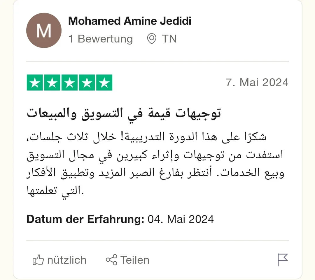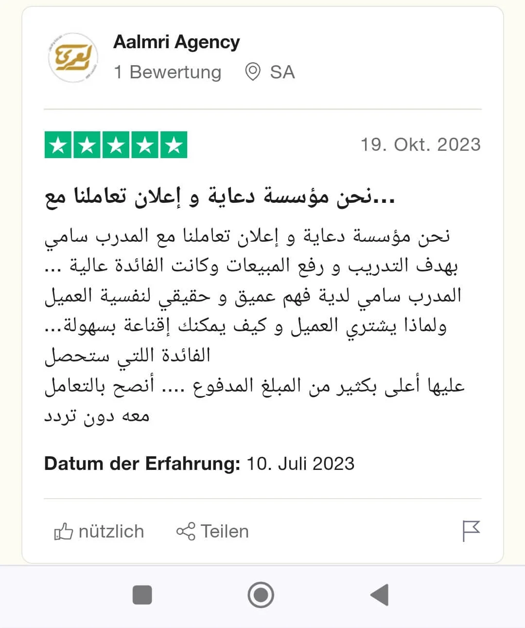 ⭐️ تقييم دورة الإقلاع بالإقناع التي قدّمتها له لمضاعفة نسبة تحويله للمهتمين الذين يتواصلون معه إلى عملاء يختارونه من بين المنافسين ويدفعون أسعاره