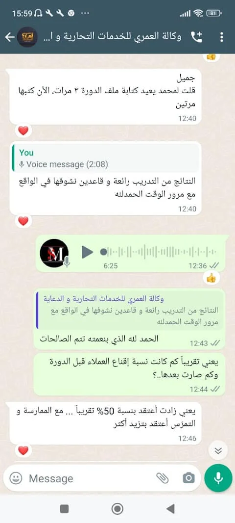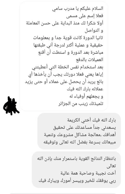 ⭐️ تضاعفت المبيعات في ظرف أقلّ من أسبوع من خلال "جلسة التحوّل" للتدريب على صناعة إعلان جذّاب وتقنيات التواصل وإغلاق العملاء بالسعر المناسب بفضل الله تعالى وتوفيقه
